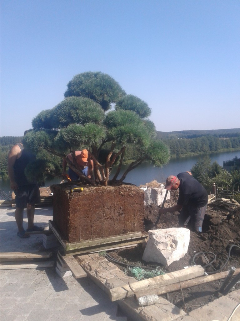 После высадки дерева, мы устанавливаем приспособления для фиксации ствола (растяжки) во избежание искривления и расшатывания растения. Кроме того, мы проводим тщательный уход (обработка стимуляторами ,опрыскивание , полив) в последующий период.